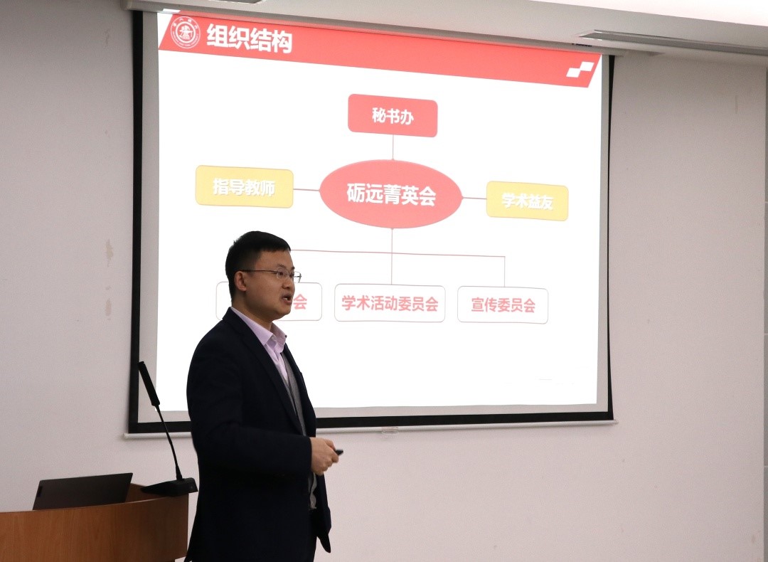 最后,熊振华总结致辞,他希望菁英会成员“会学习,会科研,会生活”,全面发展自己。同时菁英会为同学们搭建了良好的平台,希望同学们多多交流科研,分享生活经验,并能建立深厚友谊。他对此次换届活动成功举办表示祝贺,希望大家共同建设好砺远菁英会这个平台,期望同学们做出更好的成绩,勇攀科学高峰。