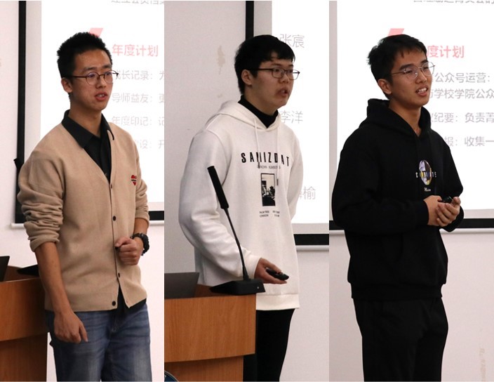 砺远菁英会2020-2021年度发展委员会负责人王上宁,学术委员会负责人诸麟榆和宣传委员会负责人李天奇分别介绍了本部门工作职责、年度计划和成员情况。
