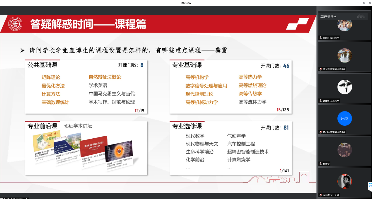 14日晚上的朋辈沙龙环节上,学院2021级博士生千坤、杨新宇、孟义轩等“致远荣誉计划”学长学姐们向营员们分享了在交大的科研感悟、学习经验和生活感想,并与营员们围绕课程学习、课题选择、研究规划、师生关系等问题进行了全面的探讨。