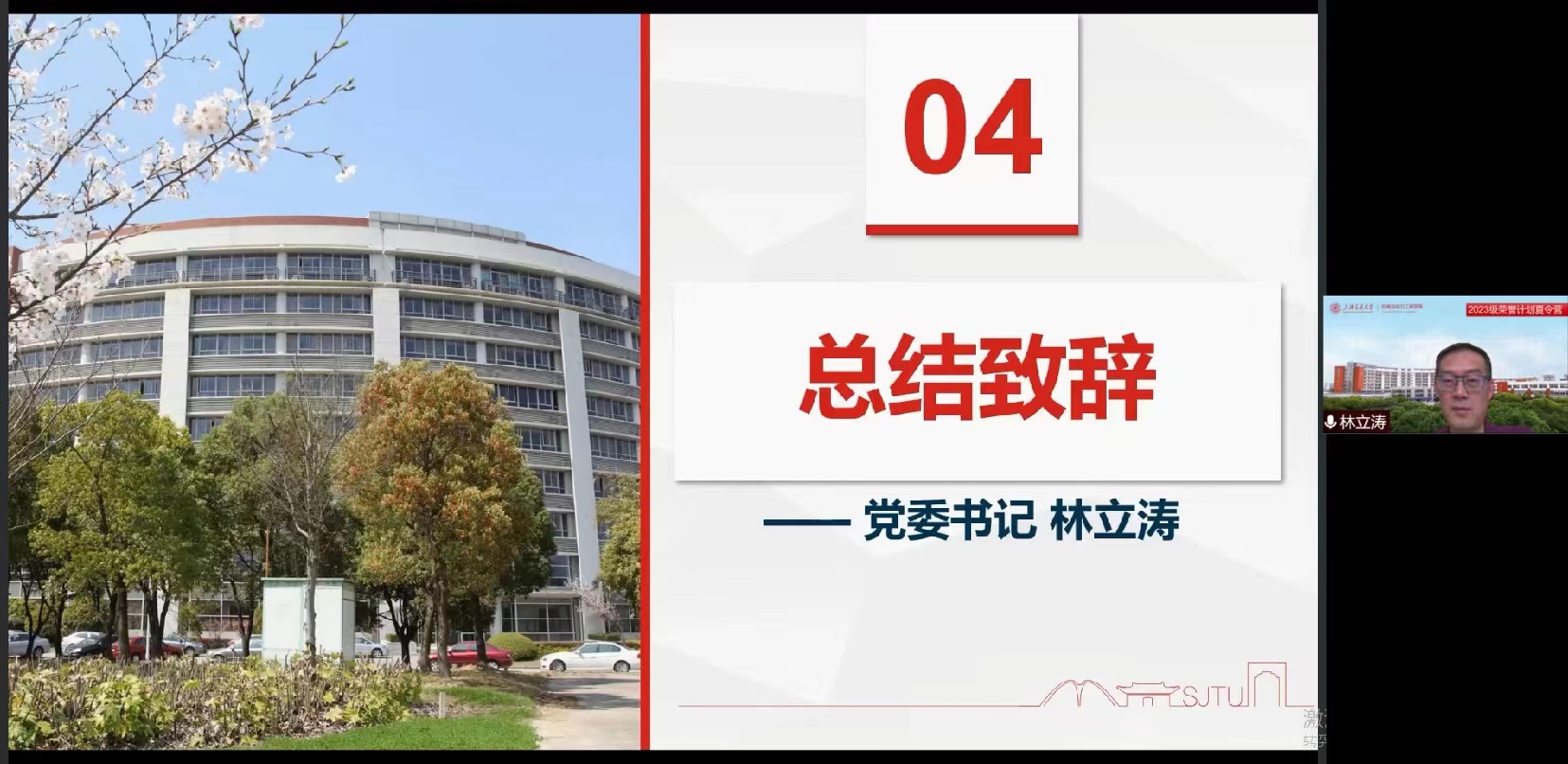 最后,林立涛书记总结致辞,祝贺365best体育亚洲官网第三届“致远荣誉计划”直博生夏令营成功举办,希望营员们通过此次夏令营,对学校及学院的师资团队、科研水平、荣誉计划项目产生进一步的了解,并热情欢迎大家未来加入365best体育亚洲官网,期待明年秋天与各位学子在交大校园相见。