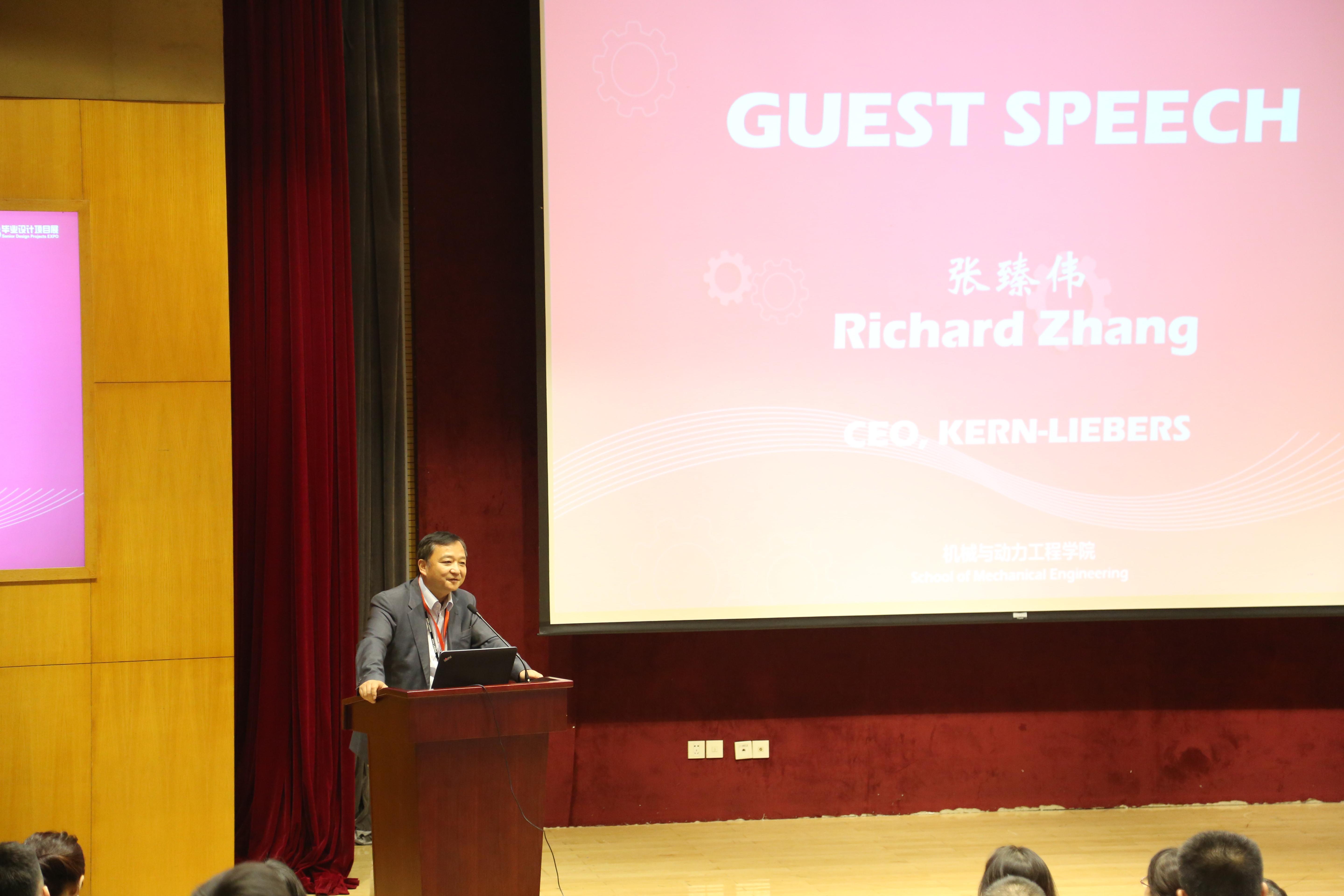 接着,克恩-里伯斯的首席执行官Richard Zhang(张臻伟)作为嘉宾代表从企业的角度表达了其对校企合作毕业设计新模式的看法与支持。毕业设计课程总负责教师陈璐具体介绍了学院推行的毕设改革创新模式,展示了本届毕业设计的企业资助、学生毕设完成及获得成果等情况,并针对下一届毕业设计制定了初步的工作规划。