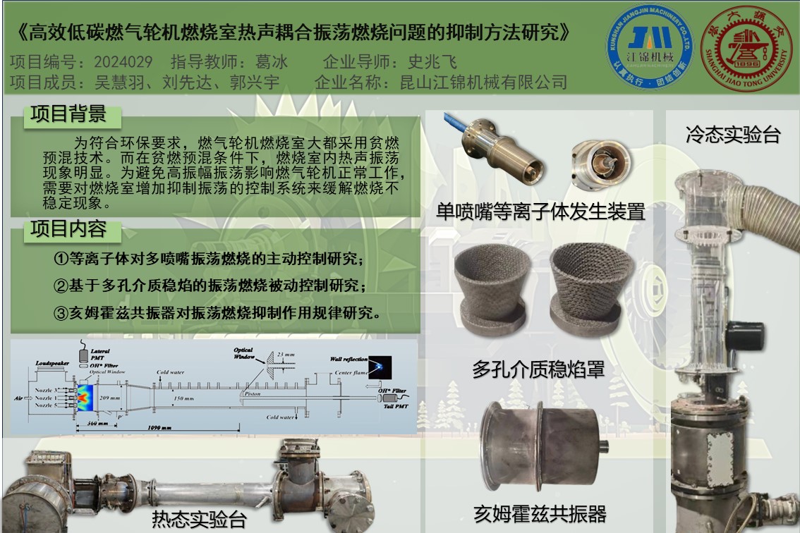 高效低碳燃气轮机燃烧室热声耦合振荡燃烧问题的抑制方法研究