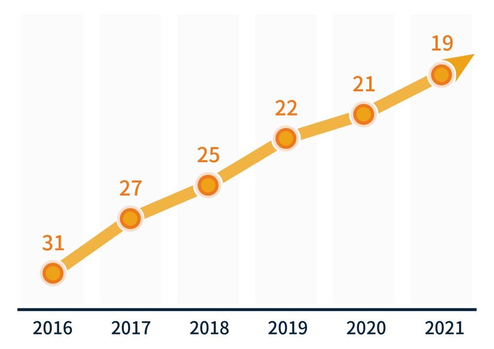 The ranking of SJTU’s Mechanical Engineering continued to rise in the past six years, from #31 in 2016 to #19 in 2021, reflecting its rapidly growing international competitiveness.