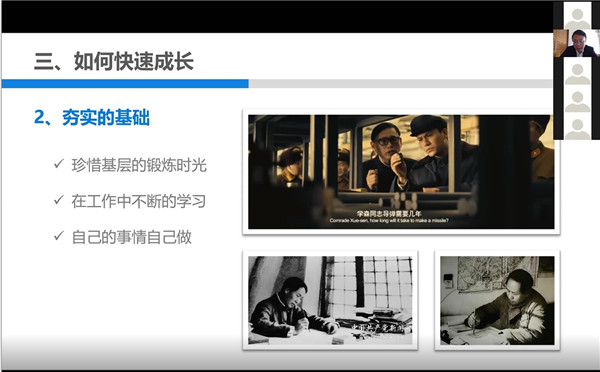 3月24日,现代设计研究所党员教师、学院兼职思政张执南就毕业生涯规划给出了建议,他分享了优秀交大毕业生校友的事迹,希望同学们要具有家国情怀,有大的人生格局和视野,无论何时都要坚守初心,坚持不懈,敢于挑战。