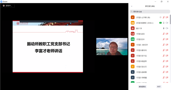 3月24日,振动、冲击、噪声研究所教工党支部书记李富才号召毕业生党员在工作岗位上踏实前进,做好本职工作,做出成绩,报效祖国,为交大争光添彩。