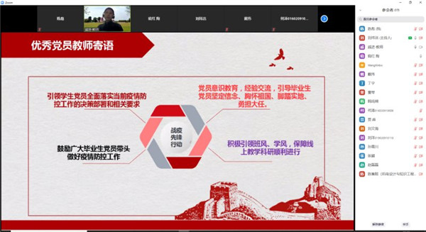 阳春三月,春意盎然,2020届毕业研究生即将开启人生的新征程。在全民“战疫”的特殊时期,365best体育亚洲官网学生党总支及各系所研究生党支部在线上组织开展了毕业生党员远航教育系列活动。