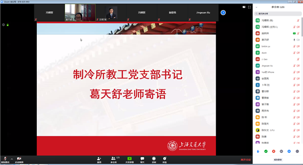 3月26日,制冷与低温工程研究所教工党支部书记葛天舒希望毕业生能够脚踏实地、勤勤恳恳,不要好高骛远,走出校园之后的所作所为要与自己的身份相匹配。学院党委副书记、支部指导教师张文明希望制冷所全体党员都能继续发挥模范带头作用,用自己的实际行动表达对祖国的敬意。