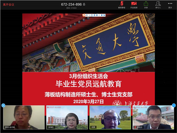 3月27日,薄板结构制造所系所长来新民希望大家在未来工作岗位上继续发扬交大精神和优良传统,踏实创新,在新岗位遇到困难时保持良好心态,以饱满的热情和健康的体魄迎接新挑战。系所教工党支部书记赵亦希希望毕业生党员不断学习,自信稳重,面对困难不要急于求成。党员教师朱平、余海东、易培云、何霁等对毕业生提出建议和殷切希望。