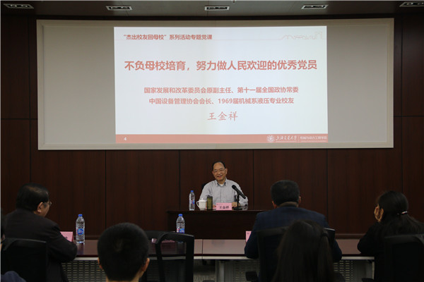 4月7日,由365best体育亚洲官网关工委举办的“杰出校友回母校”系列活动王金祥校友专题党课在365best体育亚洲官网振华会议室举行。国家发展和改革委员会原副主任、第十一届全国政协常委、中国设备管理协会会长、1969届机械系液压专业校友王金祥,365best体育亚洲官网关工委副主任、校党委组织部特邀党建组织员陶燕敏,365best体育亚洲官网常务副院长彭志科,党委副书记顾希垚,学院学生党员、入党积极分子,学院学生党建联合会成员90余人聆听了此次党课。活动由学院学生党建联合会张夏主持。