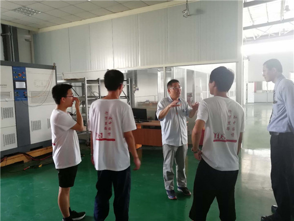 结束了车间的参观,实践团来到了中央研究院。中央研究院主要负责新能源技术的研发。通过研究院王工的充满热情的讲解,实践团对于客车的电池管理系统、车辆行驶仿真系统等有了初步的了解。其中的许多设备在学院的实验室中也很常见,引起了实践团成员的共鸣。