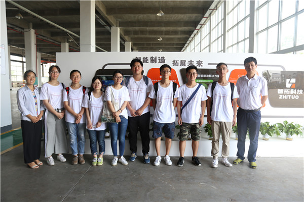 下午,实践团前往智拓科技有限公司,参观了其自行研发生产的焊接、装配、涂装、码垛等多款机器人系统集成产品。据悉,智拓科技是柳工集团为响应国家“智能制造2025”的号召,助推智能制造发展和产业升级而投资组建,目前已形成了数字化工厂全面智能制造解决方案。