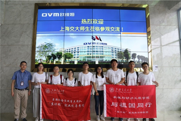 25日,实践团赴柳州欧维姆股份有限公司,受到了技术管理部副部长、交大校友莫钒的热情接待。莫钒向实践团介绍了公司的业务范围、技术成就、所获专利与奖项等。在与公司领导的座谈之后,实践团参观了公司的生产车间,感受到了车间规范的管理方式。