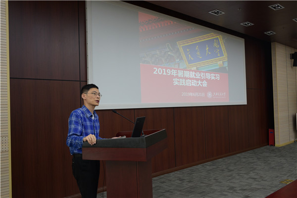 6月21日,365best体育亚洲官网2019年暑期就业引导实习实践启动大会在学院振华会议室召开。21个实践团全体成员近100人参加会议,会议由职业发展中心主任阮海涛主持。