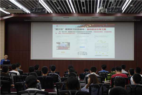 首先,阮海涛按照学院暑期就业实习实践活动精神,向全体老师和同学们介绍了本次实践活动的目的、途径、任务和报销等相关事宜,对同学们在实践过程中的常见问题给出了解答。他希望同学们珍惜实践的机会,在实践中有所收获,不断完善个人职业生涯规划,实现自我价值。