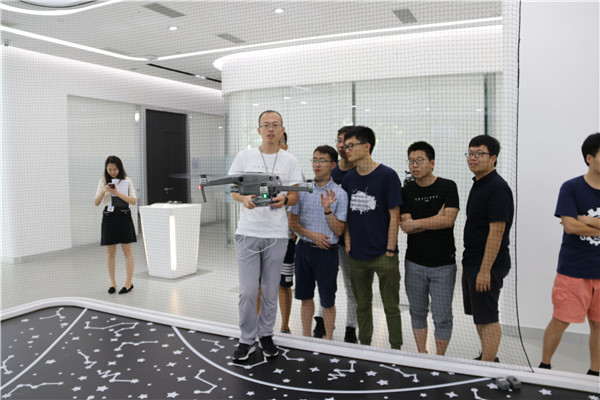 7月4日下午,深圳实践团一行前往大疆创新科技有限公司参观学习。大疆科技人力资源部王梦月带领大家参观了自大疆创办以来发布的一系列产品。自2006年企业创办以来,大疆的发展势如破竹,已成为无人机领域的技术引领者。同学们对大疆的多款无人机产品产生了浓厚的兴趣,工作人员现场试飞无人机,并用无人机在空中给同学们拍摄合影。之后,在大疆工作的交大学长赵阳、吴利鑫、赵鹏飞和同学们开展了座谈交流。三位学长向实践团介绍了他们的工作生活情况,分享了很多择业、面试经验。他们强调要夯实专业基础、在面试时展现出清晰的逻辑、回答问题有理有据,同学们受益匪浅。