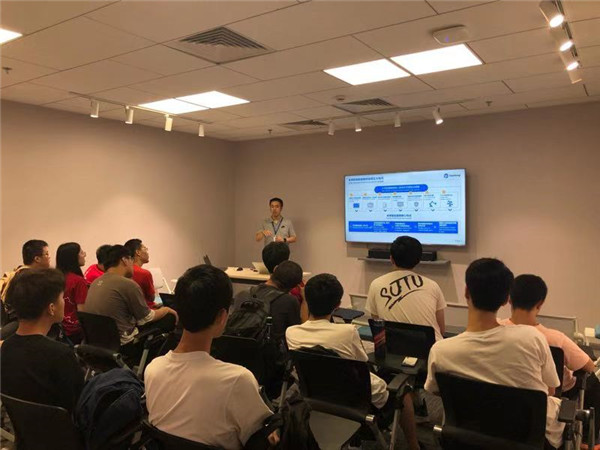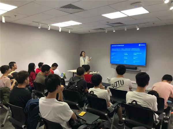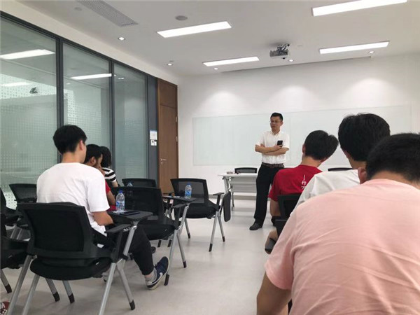 接下来,来自市场部的校友俞总向我们讲起了他的故事。1996年进入交大的他,和我们有着相似的经历,也有着相似的男女比。他以自己读书读到的“天下古今之庸人,皆以一懒字致败”入手,谈了行动上的“懒”、思想上的“懒”,进而告诫同学们要勤奋,勤于付出行动、勤于反思自己的问题,才能真正有所进步。他指出,学校所学的内容仍然有些窄,若要在企业中有所作为,还要不断地拓展知识面。在工科知识外,他建议同学们学习经济、管理学的知识。同时,他也希望同学们锻炼批判性思维,锻炼逻辑思维。从俞总的殷殷教诲中,同学们感受到了他严谨、进取的态度。