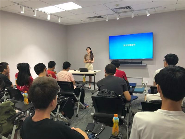 随后,来自电院的应届毕业生蒋成悦学姐围绕职业发展指导进行了讲解。她以自己的职业生涯规划开始,讲述了她的个人选择。在大二期间决定了毕业后直接就业后,蒋学姐在大学期间就参加了非常多的实习。通过不同职业、不同企业的实习经验,她对不同企业的不同风格有了充分的了解。而丰富的实习、面试经历最终化作了她选择职业时的三个考量因素:企业风格与自己的契合程度、面试过程中感受到的企业氛围、对自己工作的认知及未来发展的打算。接着,她又针对同学们给出了她的建议:在暑假期间通过参加实习、体验实验室生活来提前了解工作、读研的实际状态,进而决定自己的未来。同学们也借机进一步提问,得到了延锋在人才招聘方面对学历的看法以及对人才的期望。胡总详细地向我们讲述了他对人才的期望,并为我们将来的职业选择提供了非常多的建议。