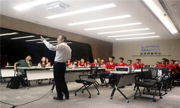 下午14:00,长安汽车人力资源部部长江爱群在研发中心的会议室对实践团进行接见并展开座谈。援引1981年美国运输部长向总统里根的报告,江爱群部长认为“汽车工业是社会发展、经济兴衰的风向标,事关国家安全”。而在目前这样机遇与挑战并存的格局中,长安汽车认为新能源、智能化、完善共享的生态是未来汽车的发展方向,故提出第三次创新创业战略,推动行业转型升级。在人才需求方面,江爱群部长表示,结合长安汽车第三次创业之要求,认为未来的人才既要善于技术创新,又要善于商业模式和管理创新。