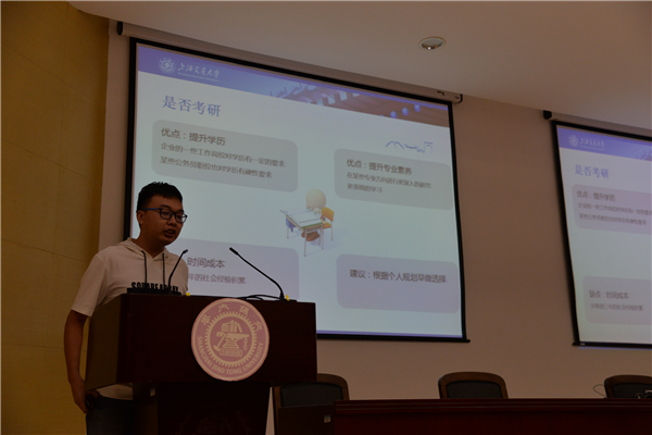 顾希垚结合自身经历,讲述了自己和两个同龄人大学毕业后做出的不同选择,最终对现在的各个方面产生的影响,告诉同学们生涯规划的重要性。他指出历年本科生就业过程中遇到的问题,分析本科结束时人生选择决策的得失与自己的人生感悟。他告诫同学们要用发展的眼光进行生涯规划,眼下的选择是为了以后的人生有一个更好的平台。