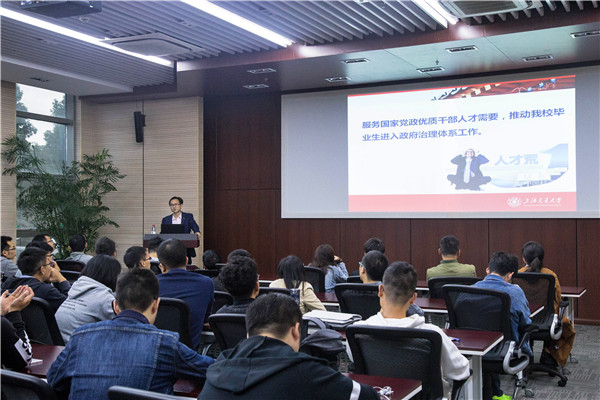 侯士兵以 “格局决定结局,境界决定高度”为主题向同学们作选调生政策解读专题报告。他从国际形势和国内政治体制改革讲起,建议同学们更多地思考其背后的深层原因,提醒同学们重视生涯规划;随后,侯士兵为同学们详细介绍了选调生政策的基本情况、报考流程和近年交大选调生的报考录取情况,重点强调了定向选调、公务员、大学生村官的区别;最后,他鼓励同学们走向祖国最需要人才的中西部地区,为国家和民族的发展做出交大人的贡献。在提问环节中,同学们踊跃参与,侯士兵对报考意向选择、专业限制等问题做出了详细的解答,同学们表示获益匪浅。