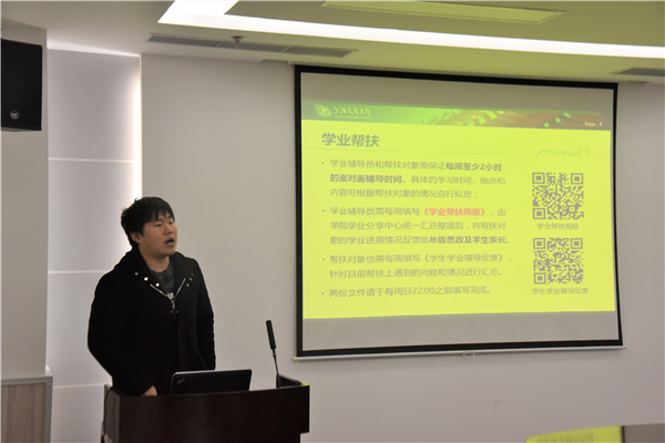 王国锋对上学期的学业辅导员工作进行了总结,并强调了本学期项目的重点,同时对辅导员及帮扶对象都提出了一定的要求,参与人员都认真倾听并发表了各自意见,各位班主任也对各自班级的优秀案例进行分析、分享,同时也有同学分享自己成功之道。