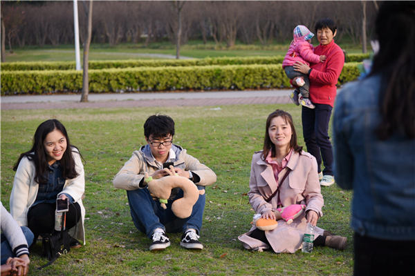 下午2点整,参加活动的三十名同学准时在凯旋门大草坪处集合,席地而坐,谈笑风生。第一个环节“你是我的菜”,由同学们依次挑选自己喜欢的菜名,选到同一菜色的同学两两组队,共同完成游戏。本次活动共设计9个关卡,分别对应校内的九个地点。每组同学需要根据提示图片猜测地点,再到对应地点完成不同的游戏。最后根据游戏完成情况与游戏成绩判断两人之间的默契程度。