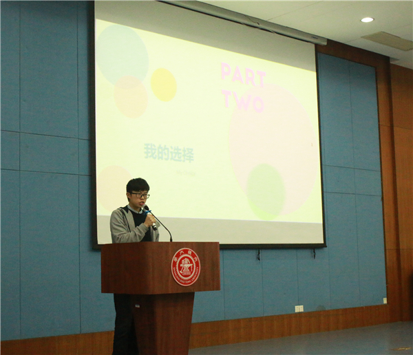 机械工程及其自动化专业的范娇姣同学介绍了怎样利用学校网站对信息进行探寻,并对机械专业的研究所进行了大致的介绍,希望同学们能承担国家发展的责任,把自己命运和国家命运联系在一起。