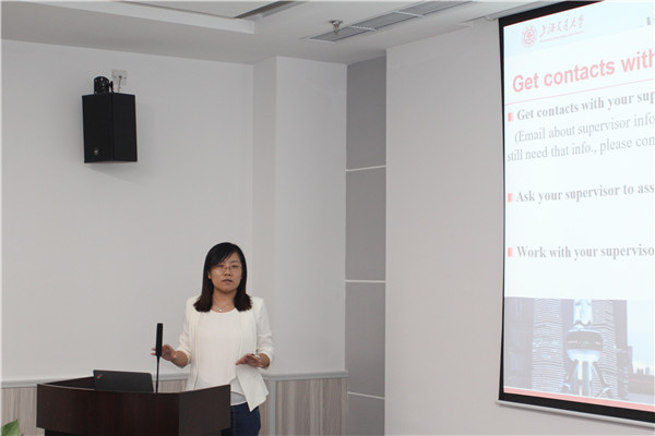 研究生教务办刘英翠老师详细介绍了留学生培养的各项内容,包括机动学院简介,硕士和博士研究生项目介绍,毕业信息管理系统,以及日历、相关网址等实用信息。
