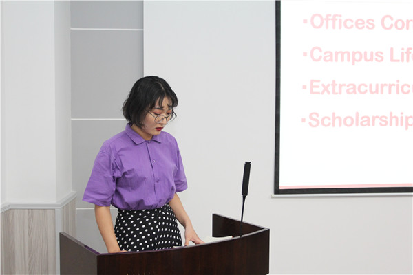 国际化办公室张晓旭老师分享了在交大的校园生活。她详细介绍了留学生常用的办公室联系方式、校内常用的出行方式、图书馆、餐厅和运动场所以及奖学金申请等。她鼓励留学生们积极参加学校社团和学院活动。