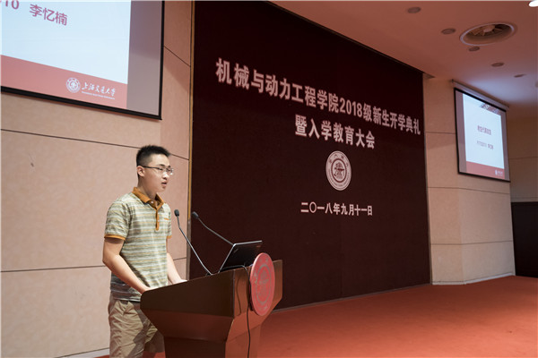2017级钱学森班班长李忆楠就认识专业、学在交大、课余生活三个方面向在座新生分享了自己的青春回忆,以自身许多“第一次的感动”激发了新生们对于大学生活的遐想。