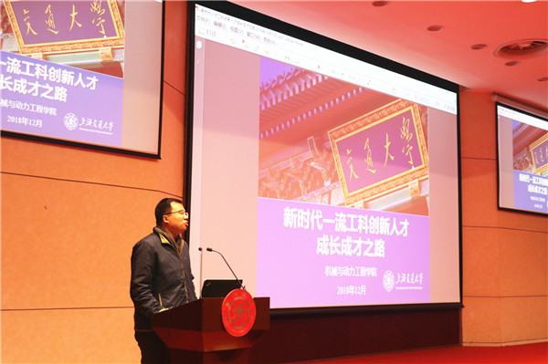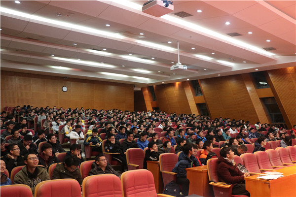 顾希垚以《新时代一流工科创新人才——成长成才之路》为题,强调了学校的人才培养目标,概括了同学成长成才的必备要素,并介绍了中国制造2025部分内容,指导同学们规划好大学生活。