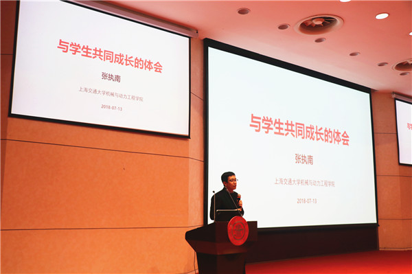 张执南分享了他与学生共同成长的体会,归纳了几种常见的同学心理状态并分别提出建议,并向全体新生寄予了“向美而立,逐梦高飞”的期望。