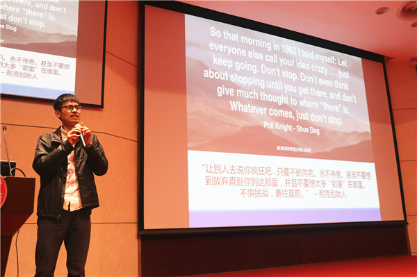 随后他讲述了自己对“给予”与“获取”问题的看法,以及对于实现人生价值的认识,鼓励同学们找到自己的热爱,这样“就成为了你的罗德学者”。