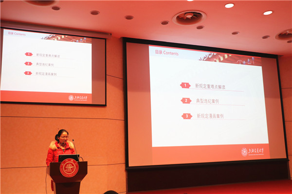 最后,林秀娟针对违纪处分规定进行解读,并通过漫画案例等形式给即将进入考试周的同学们敲响警钟,强调了诚信应考的重要性。