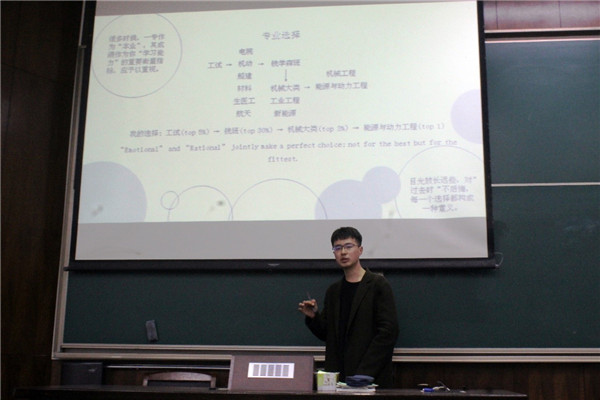 来自能源与动力工程专业大三的丁志远分享了他对于专业选择以及钱学森班现状的看法,也提到了学生活动和课业学习的配比,最后还分享了关于实习的经验。
