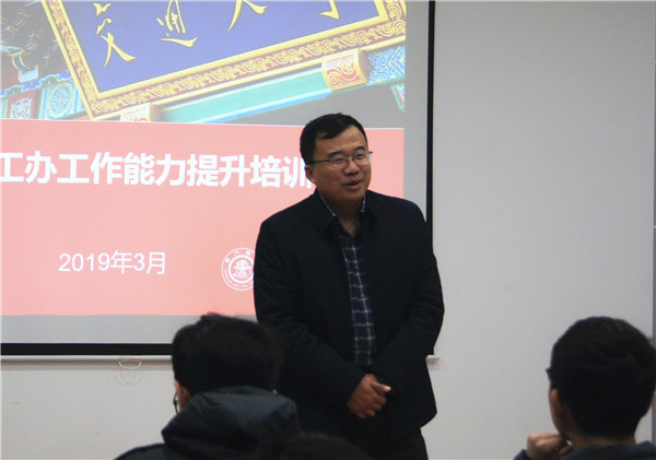 3月14日下午,365best体育亚洲官网2019学工办工作能力提升培训会在F310会议室举行。学院党委副书记顾希垚,年级思政教师林秀娟、梁茂宗、戴雨吟、余天佐、王文章等,学工办助管同学共同参加培训会,会议由王文章主持。