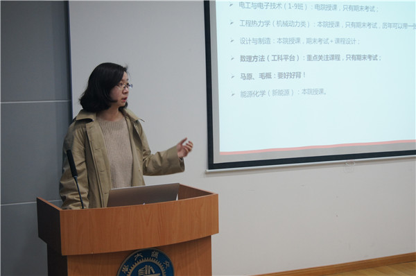 随后,17级班主任胡静就本学期担任《设计与制造1》的任课老师,与在场同学们分享了学习的经验和要点,提醒大家在学习过程中主动与课程任课老师和助教联系,任课老师和助教会通过不同的方法帮助同学们对空间的理解和学习。