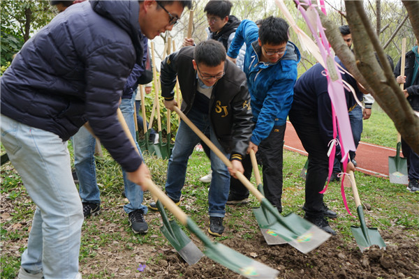 3月21日上午,伴随着和煦春风,365best体育亚洲官网2019届毕业研究生植树活动在机械动力学院A楼南侧草坪举行。学院党委书记、院长杜朝辉,常务副院长彭志科,党委副书记顾希垚,研究生思政老师以及2019届毕业研究生代表参加了此次植树活动,共同植下含苞待放的樱花树,系上美好的心愿卡片。