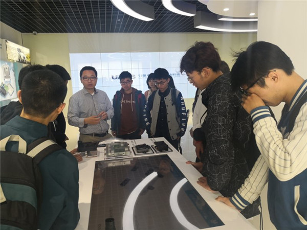 首先,同学们来到了产品展示大厅。在市场部同事的介绍下,同学们对于汽车及其零部件的设计与制造以及当前该领域各类技术的发展情况有了更深入的理解,也对联合电子长期进行的研究领域和现有成果有了更加清晰的认识。随后,同学们与苏博士对于汽车系统芯片的制作、发展、新能源汽车与传统能源汽车领域的瓶颈与解决方案进行了恳切的交流,在交流过程中,同学们积极提问,频频点头以表达内心的认同,体现出同学们对于汽车领域前沿科技的关注,苏博士耐心解答也体现了联电人对于先进汽车技术的关注与他们的不断追求。