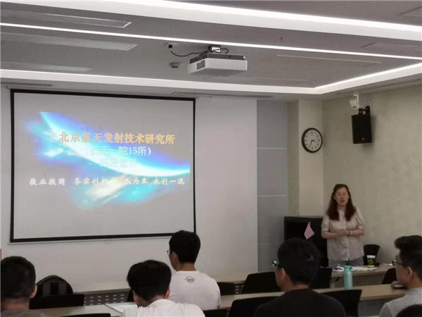 随后,张家源详细介绍了十五所的详细情况,从中国航天史波澜壮阔的篇章介绍北京航天发射技术研究所的方方面面,让同学们对十五所有了更深入的了解。之后张家源介绍了十五所的改革求新的思想和诉求,希望能百尺竿头更进一步,更好地贴合新的社会环境。最后表示十五所对人才的需求和渴望,人才战略一直是十五所的重要思想,表达对同学们投身科研实验的希望。