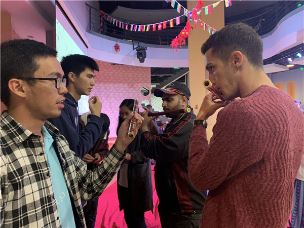 活动伊始,笛箫协会的同学们合奏了中国经典民乐曲目《茉莉花》,对留学生们的到来表示了热烈欢迎。