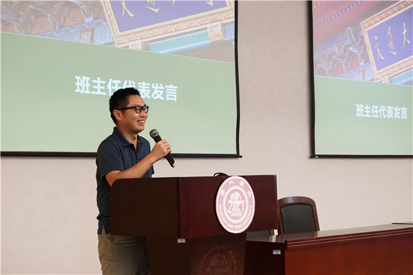 班主任代表王亚飞肯定了军训在培养爱国情怀方面的作用,鼓励同学们勇敢迎接军训中的挑战,同时,他列举往届交大学长借军训的灵感发明恒温防弹衣的例子,希望同学们多钻研,勤动手。