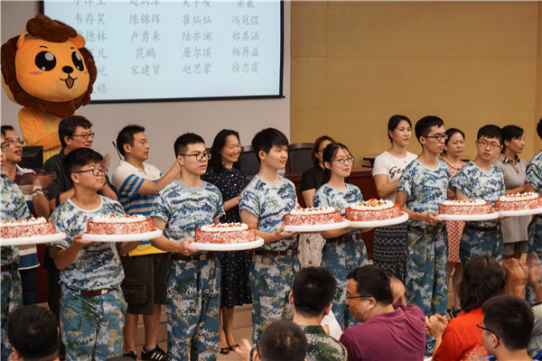 最后,在场所有人为军训期间过生日的二十余位同学进行了一次集体庆生,在《祝你生日快乐》的歌声与掌声中,家长代表为孩子们送上精心准备的生日蛋糕,会场洋溢着浓浓的温情。本次生日会将成为同学们在交大生活中一段难忘的回忆。