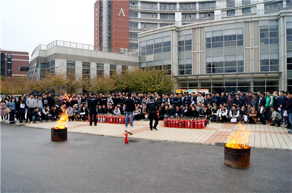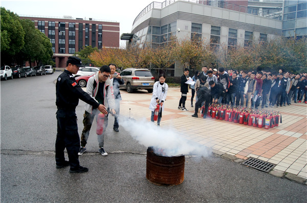 培训结束后,同学们填写了消防安全知识问卷,对培训会上的知识加强理解和记忆。随后同学们在机械辅楼广场进行了消防安全演练。首先葛树杰现场演示了灭火器的操作方法以及注意事项。同学们依次拿起灭火器对铁桶内的火焰进行了灭火练习,真切地感受了消防器材的重要作用,也加强了对于灭火操作的直观认识。