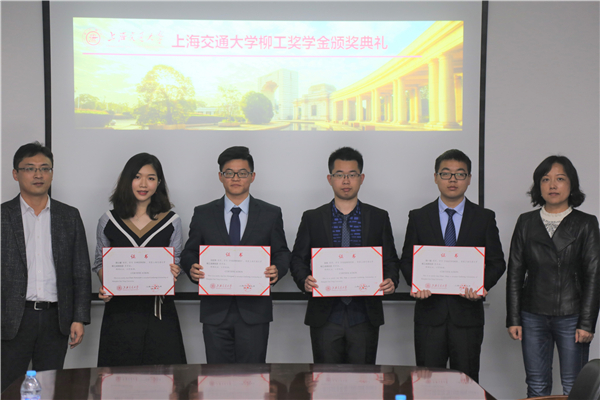 本届柳工奖学金获奖学生代表王艳真上台,分享了自己的学习、科研成果,提出要继续潜心钻研、脚踏实地,承担作为交大人的责任。