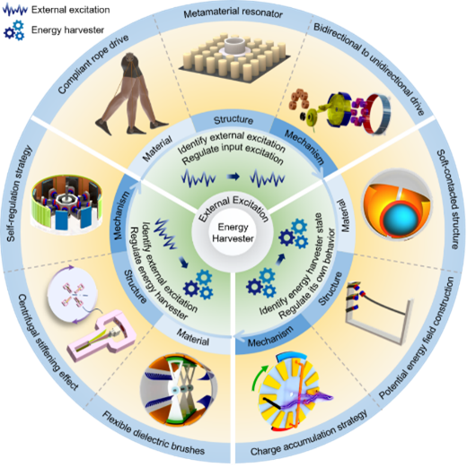 近日,365best体育亚洲官网张文明教授团队、湖南工程学院魏克湘教授团队和西北工业大学周生喜教授团队联合在Advanced Energy Materials (IF=29.698)上发表综述论文“Mechanical intelligent energy harvesting: From methodology to applications”,并入选编辑精选。论文为解决能量采集系统对复杂环境与工况的适应性难题,提出了机械智能能量采集概念,阐明了机械智能能量采集设计方法论,综述了具有机械智能特征的能量采集系统典型设计,预测了机械智能能量采集的未来发展趋势。赵林川博士后为本文第一作者,张文明教授、湖南工程学院邹鸿翔教授和西北工业大学周生喜教授为通讯作者。