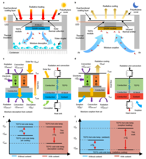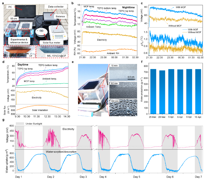 图2. SAWH-TEPG装置户外空气取水与温差发电性能