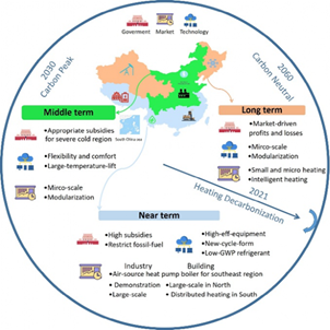 我国能源结构是以煤炭等化石能源为主,实现2060年碳中和面临着许多严峻挑战。然而目前许多低碳路径研究更多关注在电网碳减排与零碳燃料等能源供应侧,而非建筑和工业中的用热和制冷等需求侧。考虑到终端冷热用能占全社会能源消费总量的50%,供热低碳化是碳中和目标实现的重要部分,应为之配备切实有效的清洁化供热替代方案与策略。