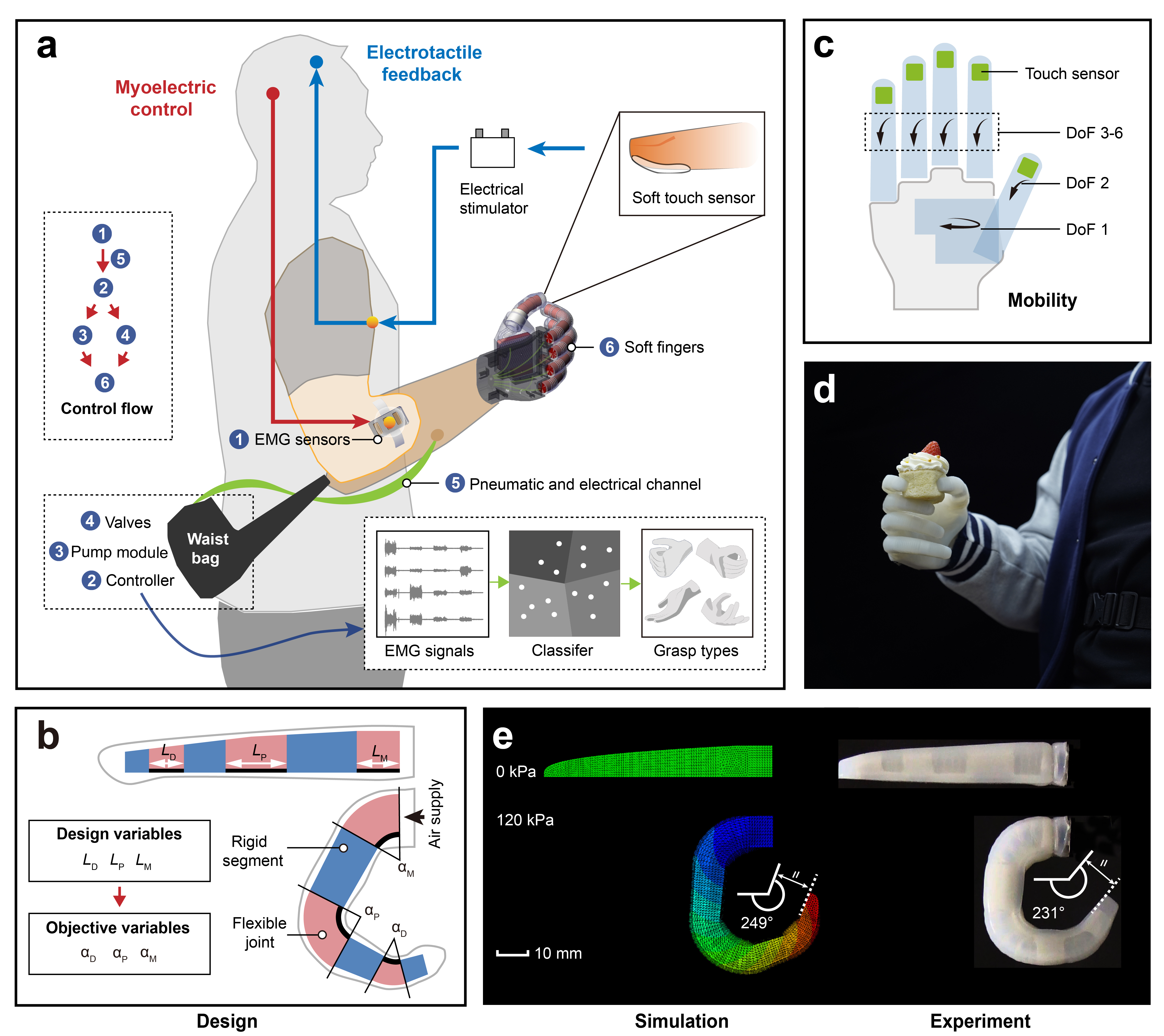 8月16日,《自然·生物医学工程》(Nature Biomedical Engineering)在线发表了365best体育亚洲官网机器人研究所朱向阳、谷国迎教授和麻省理工学院赵选贺教授的合作论文“操作感知一体化的软体神经假肢手”(A soft neuroprosthetic hand providing simultaneous myoelectric control and tactile feedback)。365best体育亚洲官网为论文第一作者和通讯作者单位,博士研究生张宁斌为论文共同第一作者。该论文也被Nature以“A tough prosthetic hand obeys the muscles’ commands”为题,作为研究亮点报道。