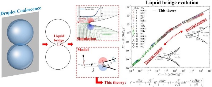 近日,365best体育亚洲官网夏溪副教授与香港理工大学张鹏副教授合作,在《美国科学院院报》(Proceedings of National Academy of Sciences)上发表论文,揭示液滴融合过程中“液桥”不同增长规律的奥秘,提出了一个“液桥”增长的统一理论,有效兼容并整合了前人发现的粘性和惯性区间的规律。夏溪为论文第一作者。